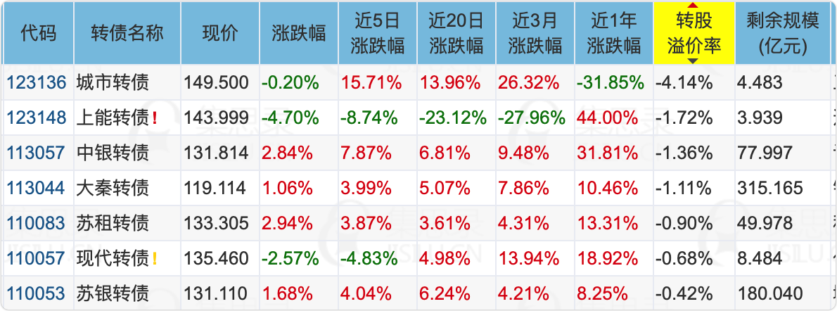 下面这些转债,要注意强赎杀溢价风险,尤其是溢价率在5%以上的。