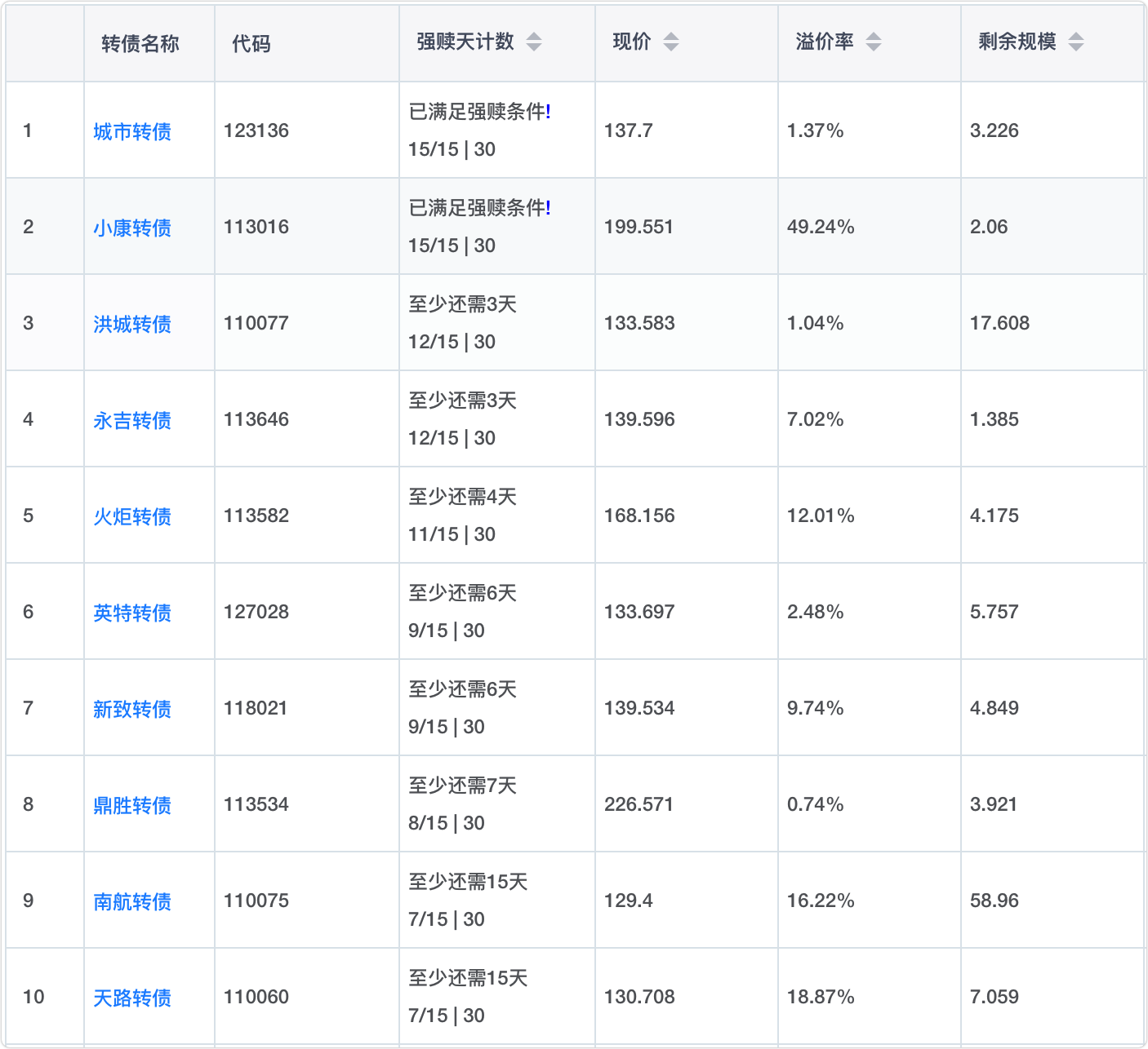 2、即将满足强赎转债