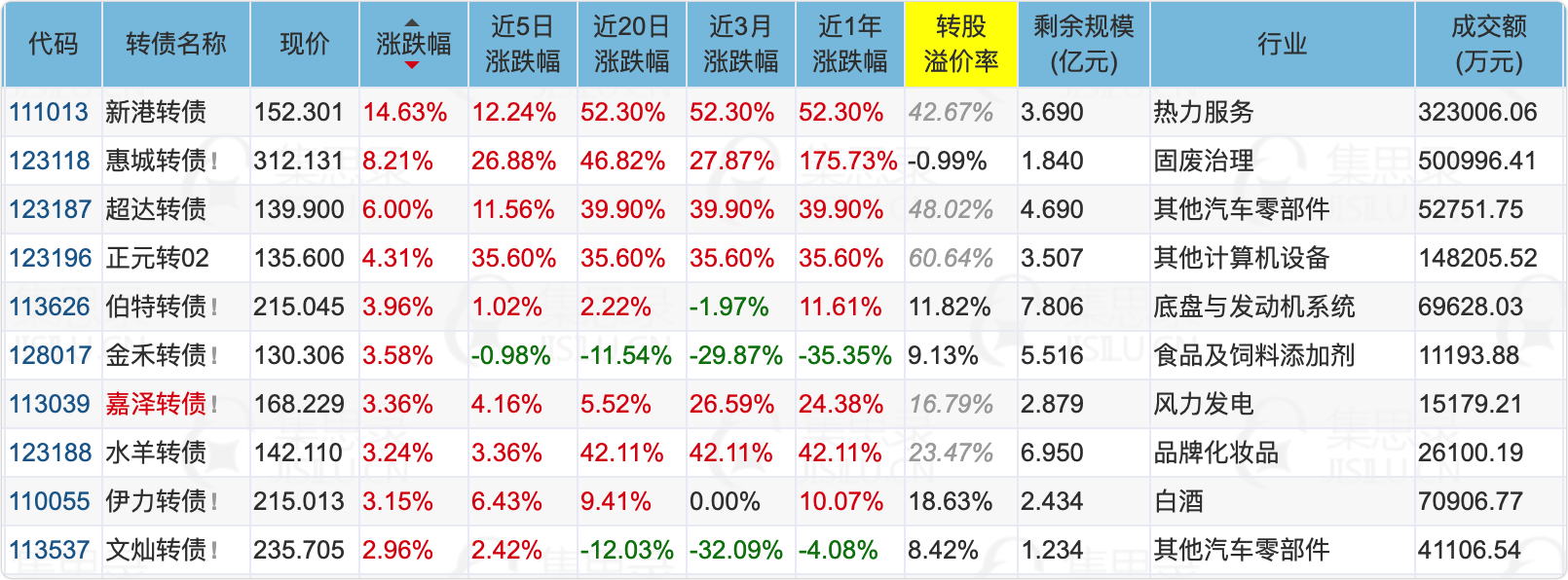 1、涨幅榜前十