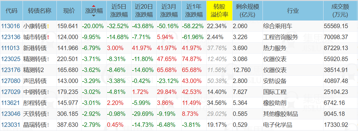 1、小康转债,公告强赎,今天暴跌20%,目前溢价率还有22.34%,明天会继续暴跌,所以高溢价的转债接近强赎时一定不要抱侥幸心理,类似的风险较大的临期双高债还有凯发转债、天康转债。