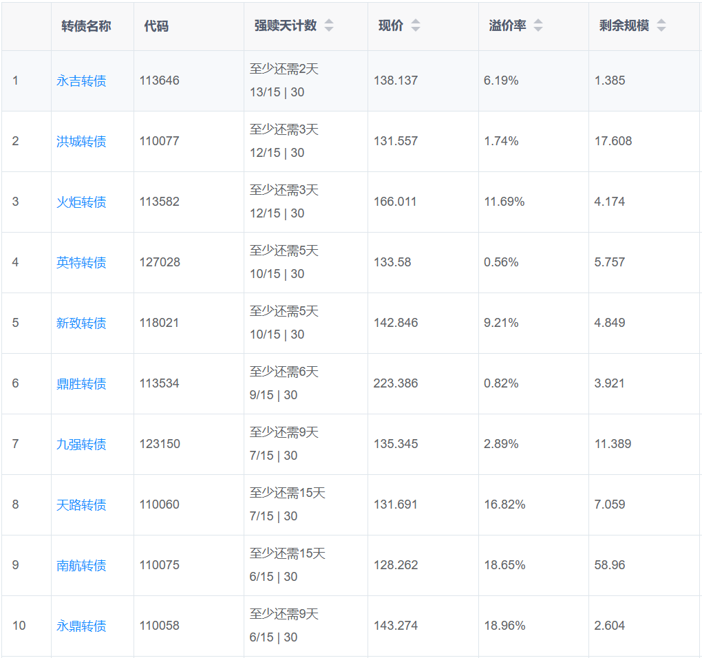 2、即将满足强赎转债