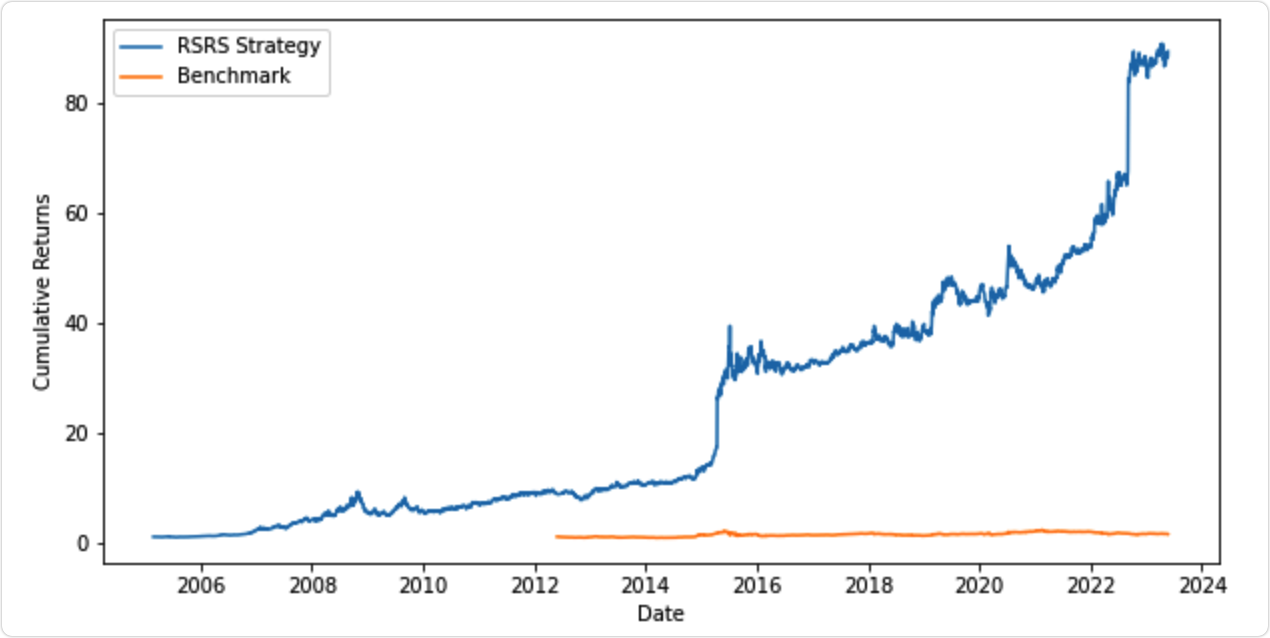 继续充电学习,回测策略,基于RSRS择时的ETF动量轮动策略,回测效果挺好的,从2005年至今,累计收益89倍多,年化收益33.61%。