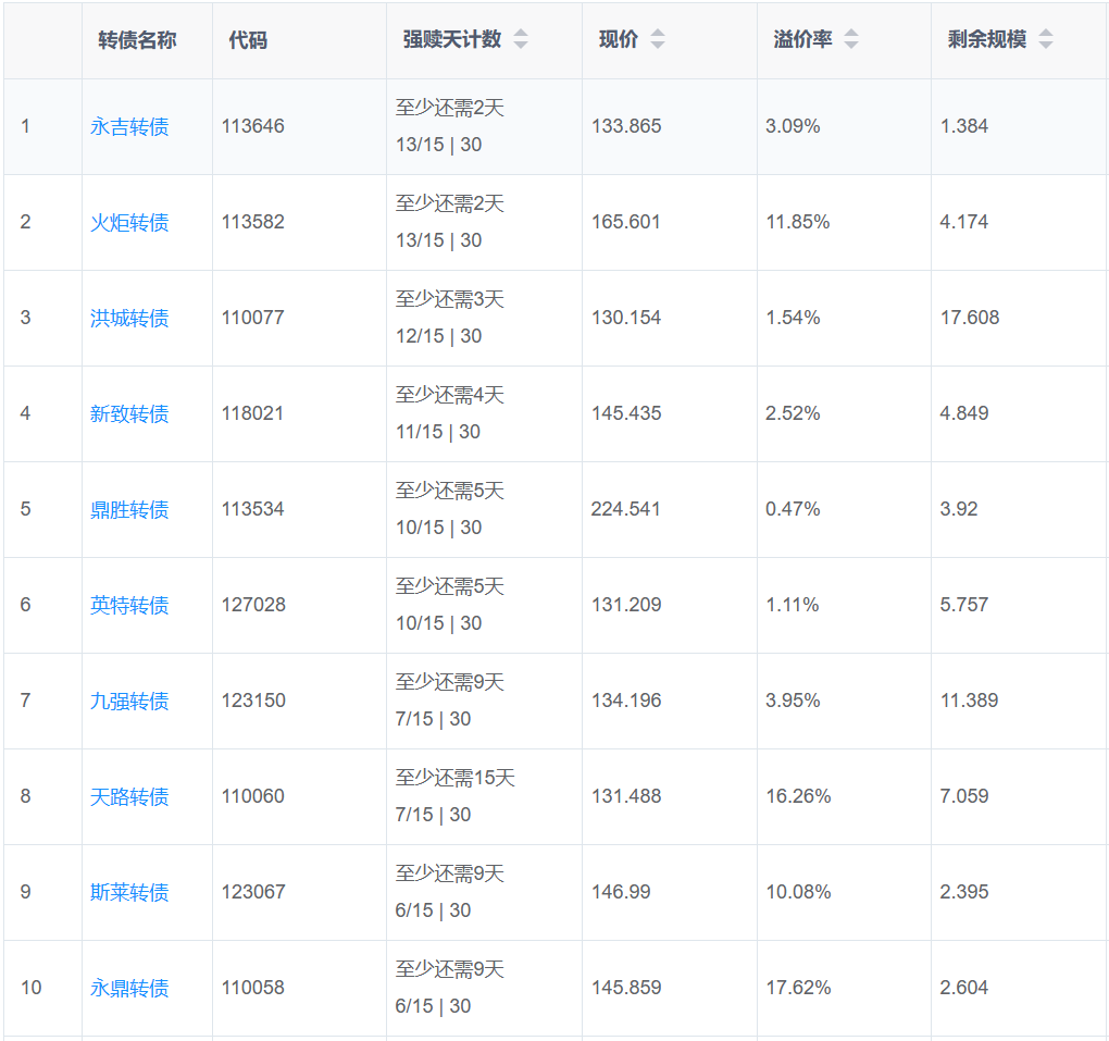 下面这些转债,要注意强赎杀溢价风险,尤其是溢价率在5%以上的。