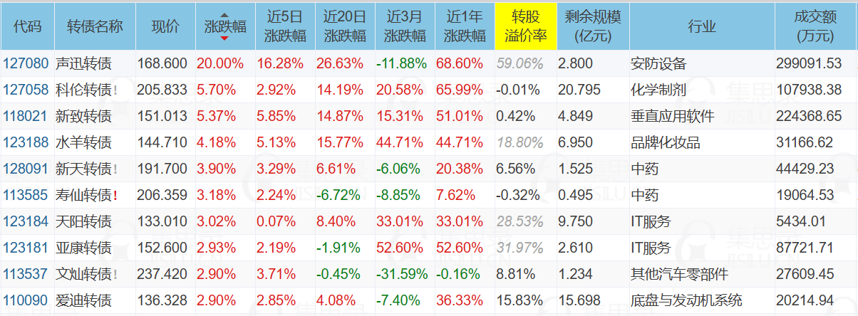 1、涨幅榜前十
