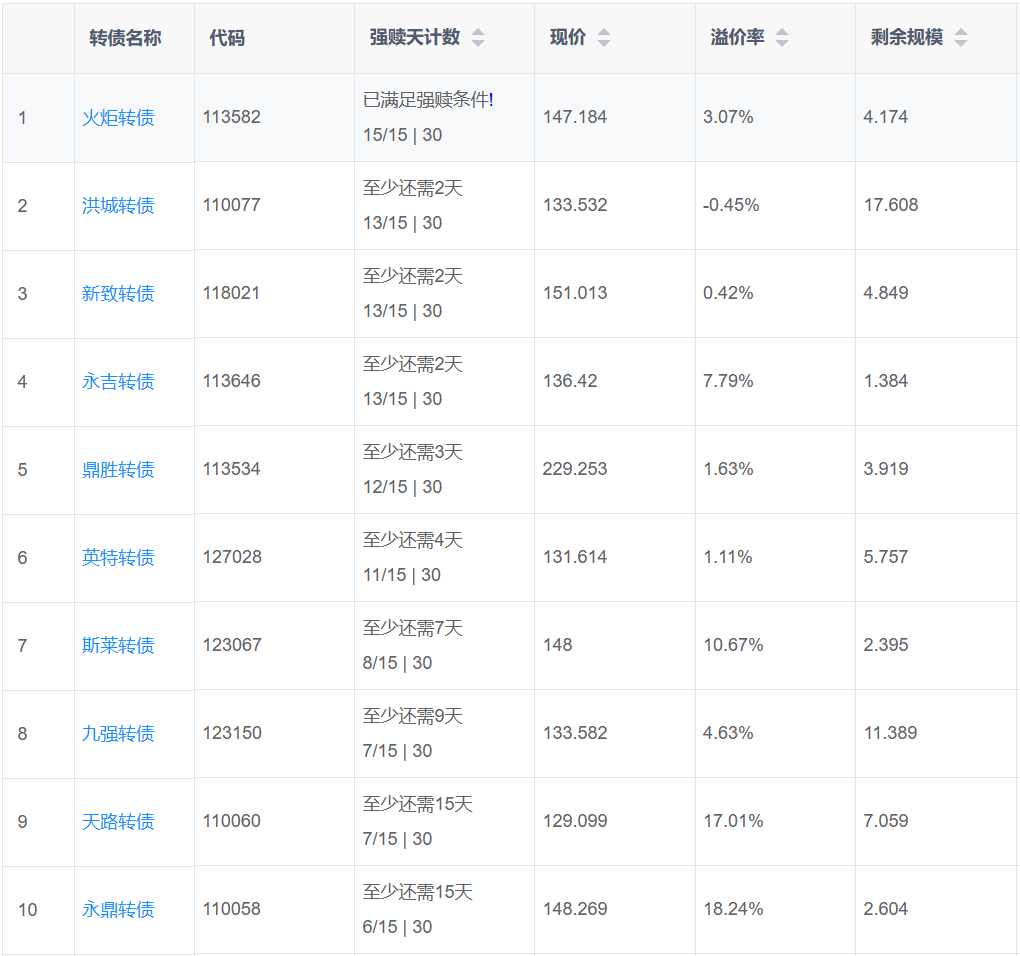 2、即将满足强赎转债