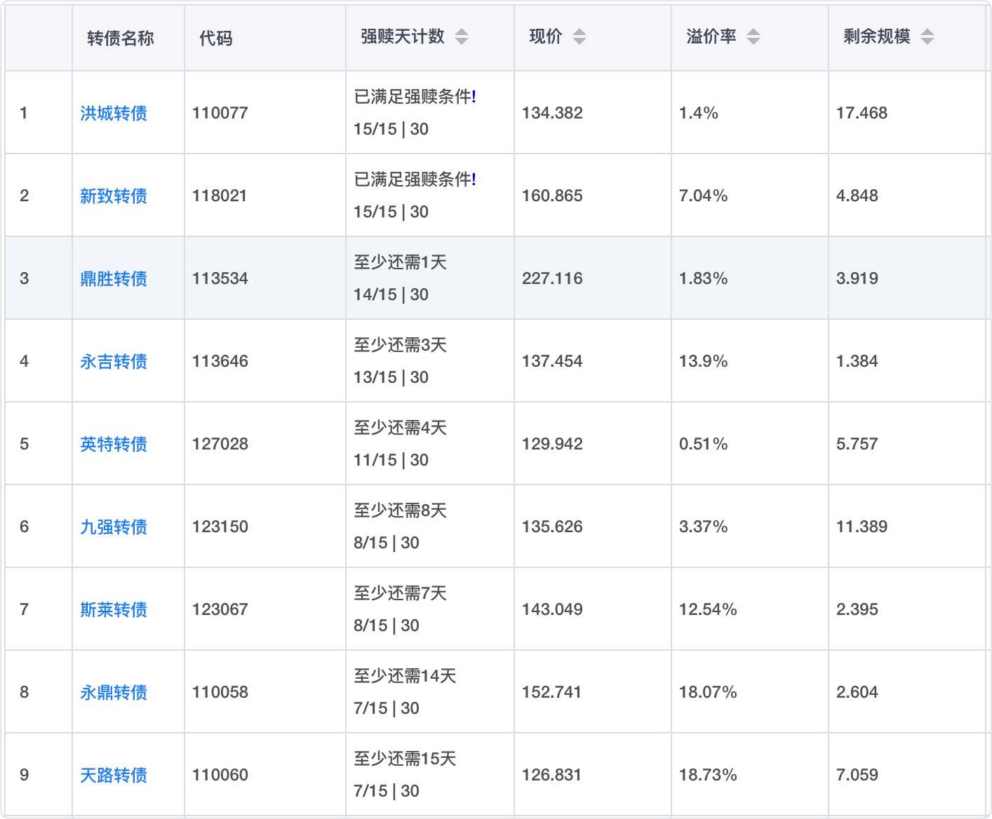 2、即将满足强赎转债
