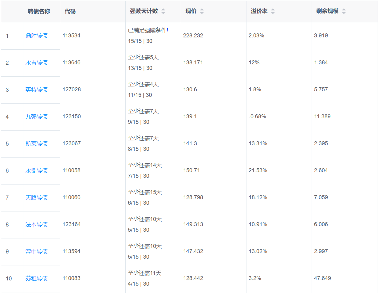 下面这些转债,要注意强赎杀溢价风险,尤其是溢价率在5%以上的。