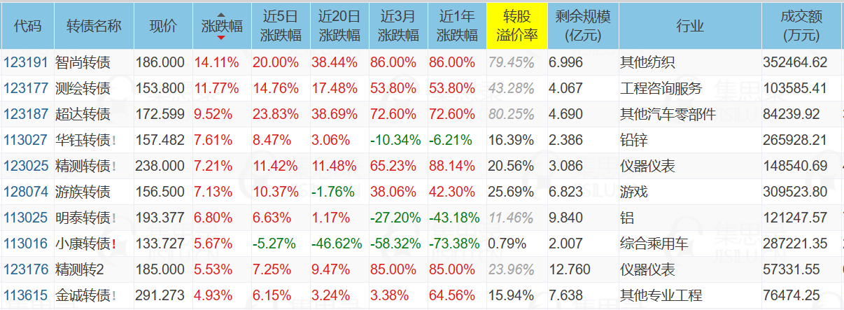 1、涨幅榜前十