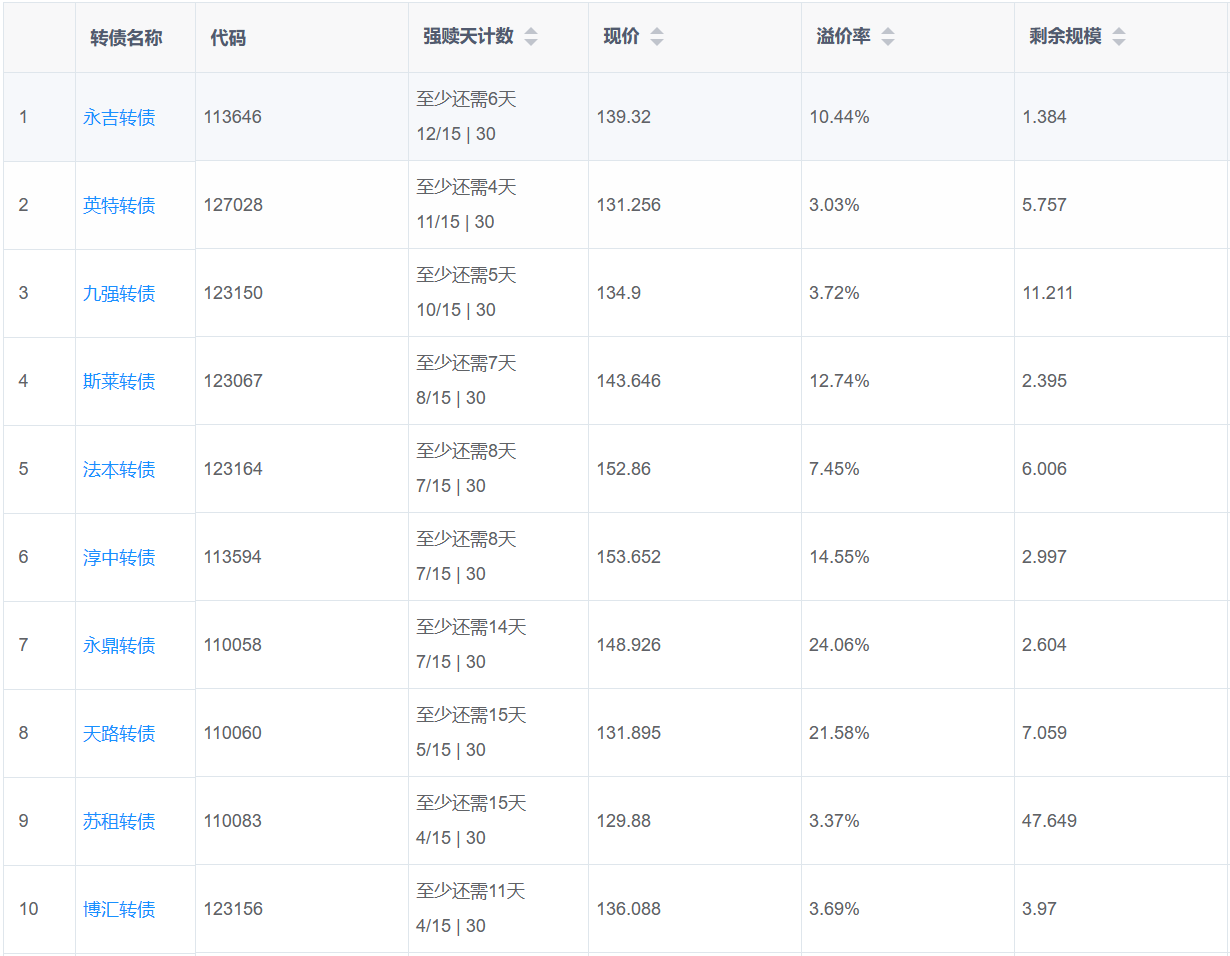 下面这些转债,要注意强赎杀溢价风险,尤其是溢价率在5%以上的。