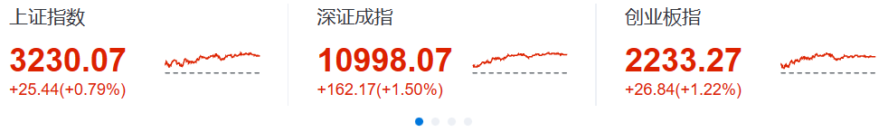 A股三大指数大涨,截至收盘,沪指涨0.79%,深成指涨1.5%,北证50涨0.64%,创业板指涨1.22%。沪深两市全天成交额9406亿元,北向资金净买入85.34亿元。两市超3400股上涨。