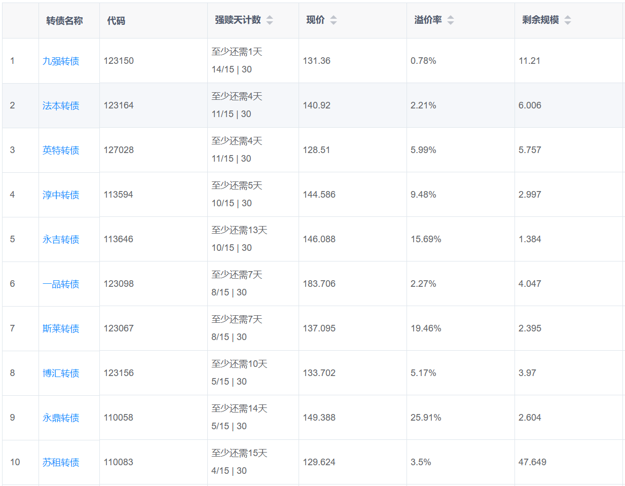下面这些转债,要注意强赎杀溢价风险,尤其是溢价率在5%以上的。