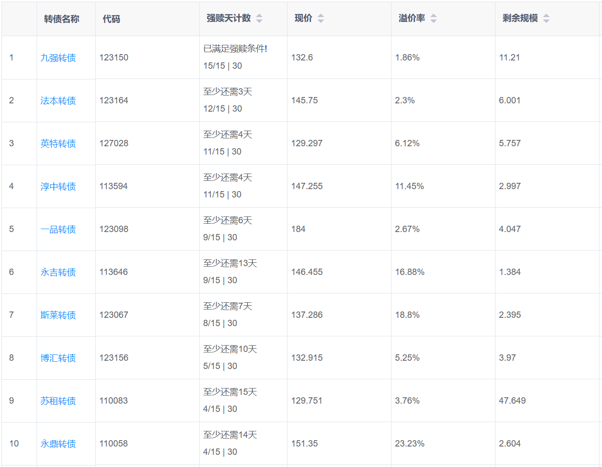 下面这些转债,要注意强赎杀溢价风险,尤其是溢价率在5%以上的。