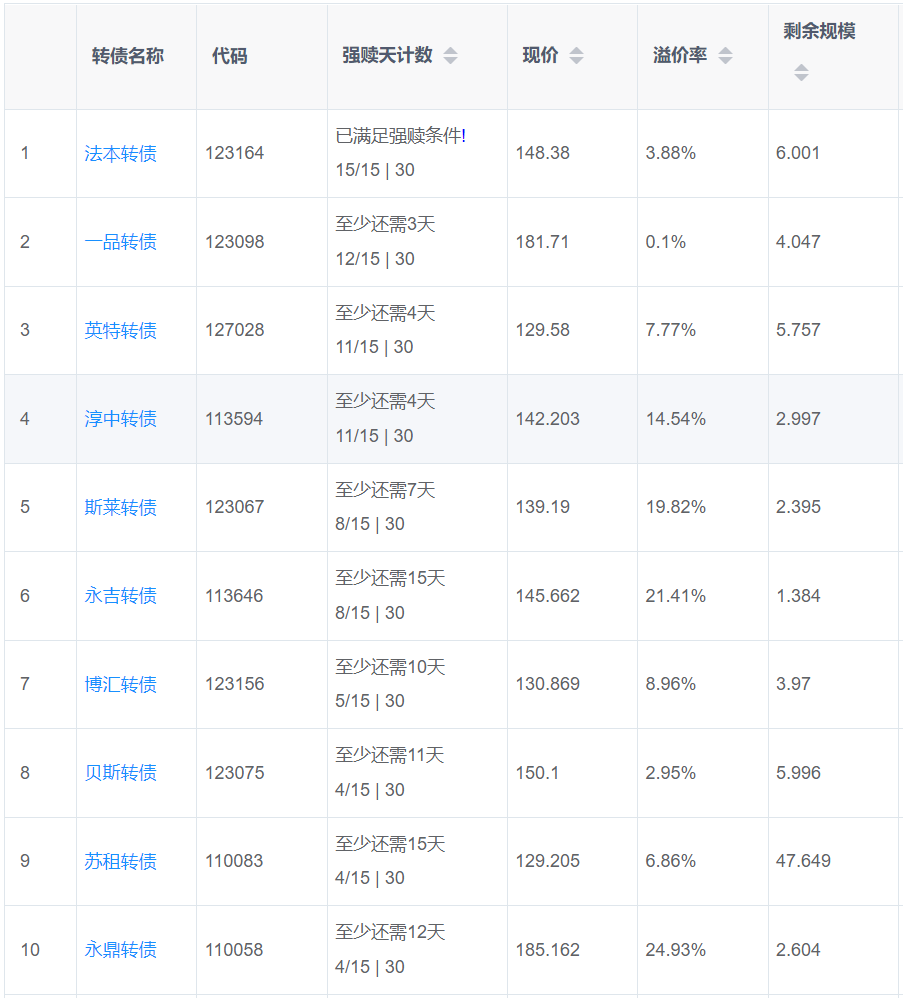 2、即将满足强赎转债