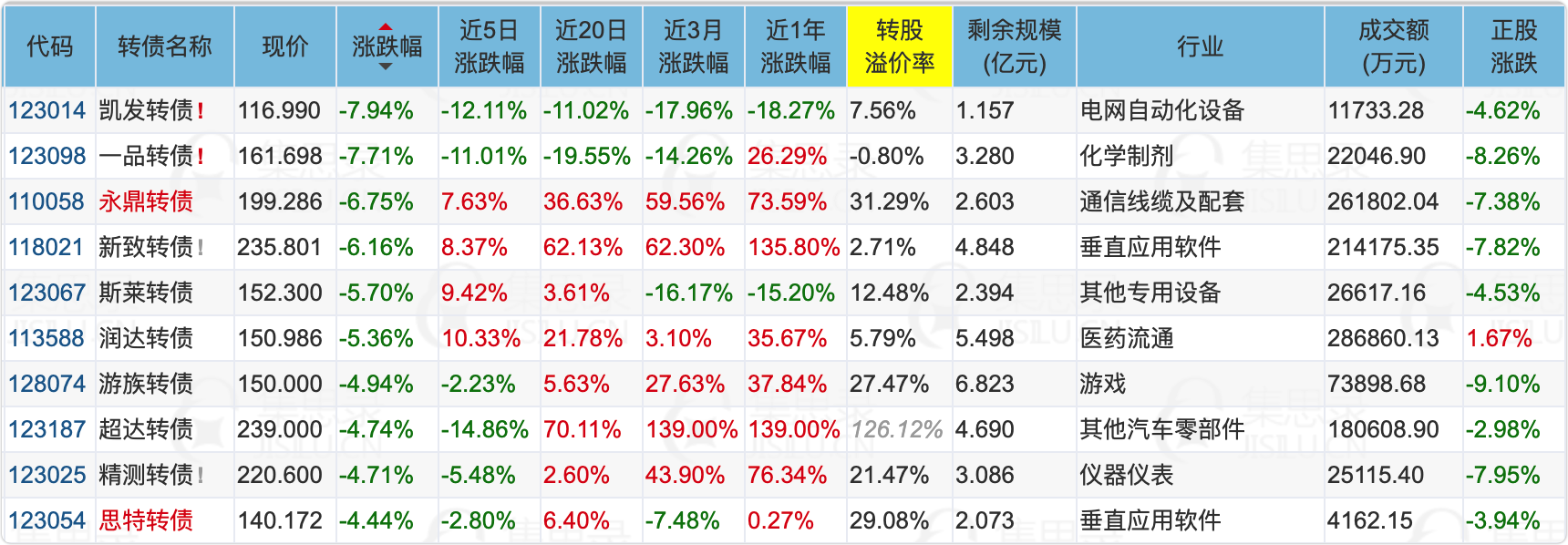 下面这些转债,要注意强赎杀溢价风险,尤其是溢价率在5%以上的。