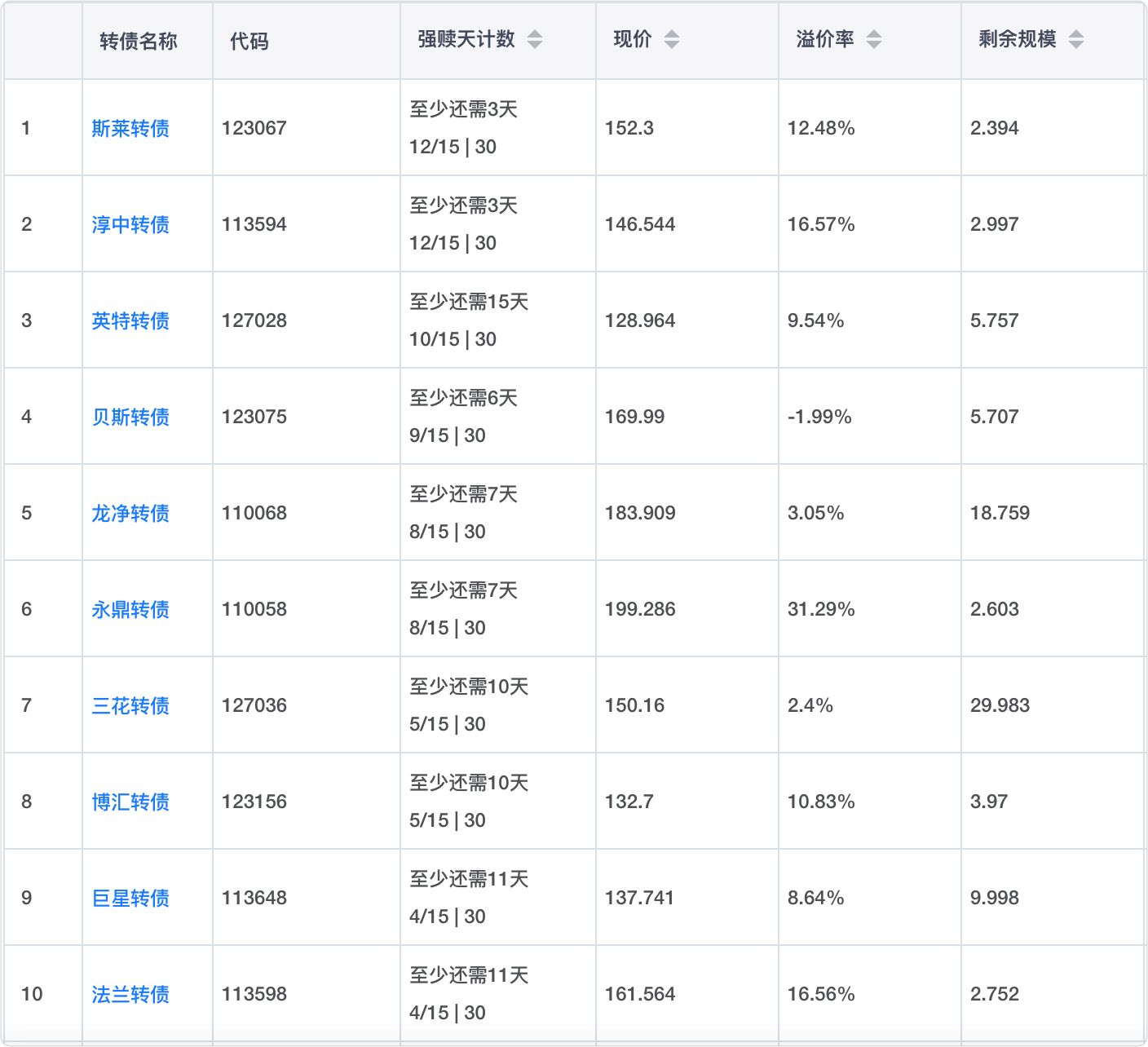 2、即将满足强赎转债
