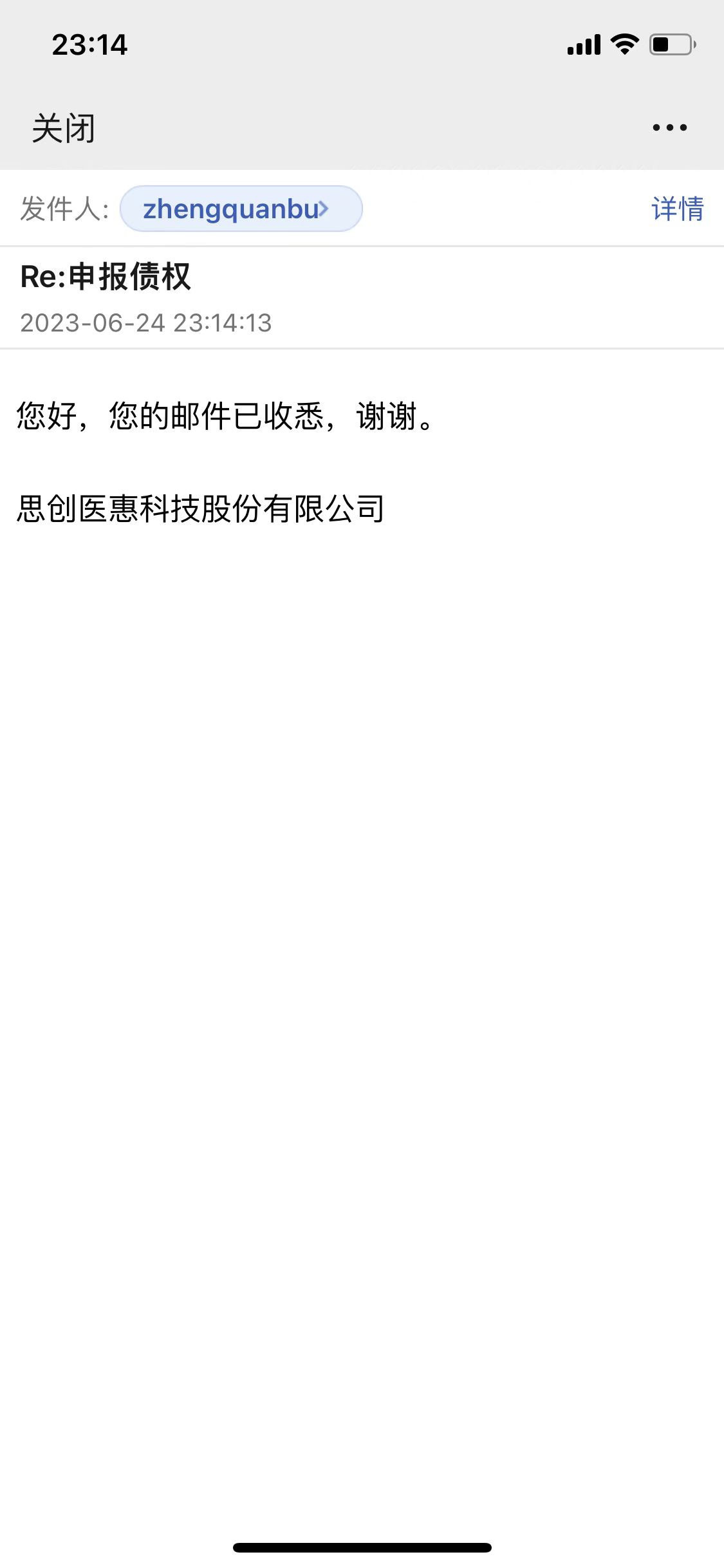 收到思创医惠的回复,如下图。