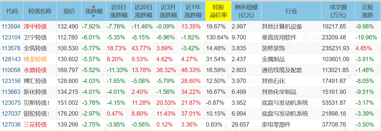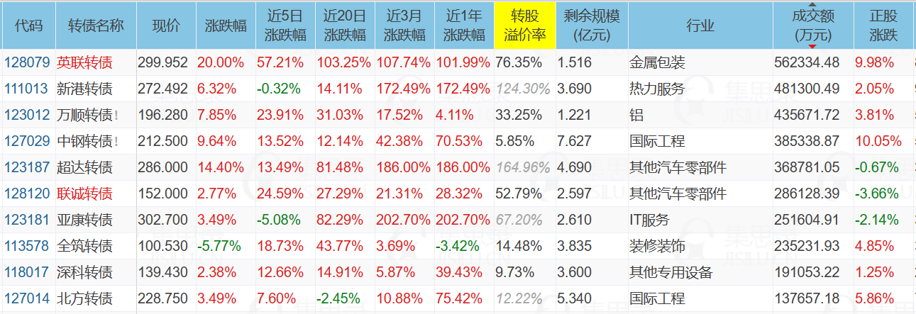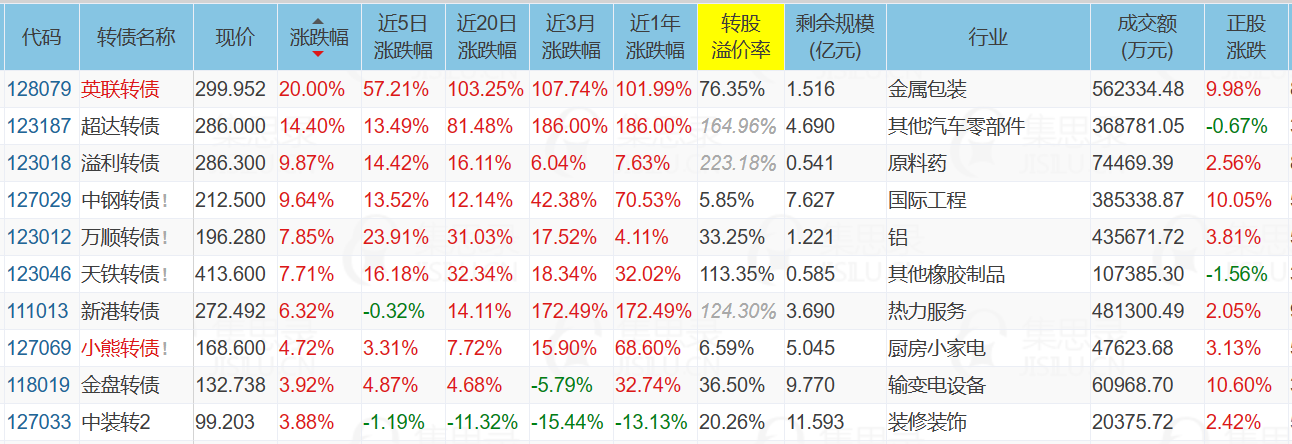 3、贝斯转债,公告强赎。当前溢价率-0.87%,剩余规模3.95亿,正股流通市值65.81亿,占比6%。70%以上的转债强赎后,都会形成股债双跌的局面。