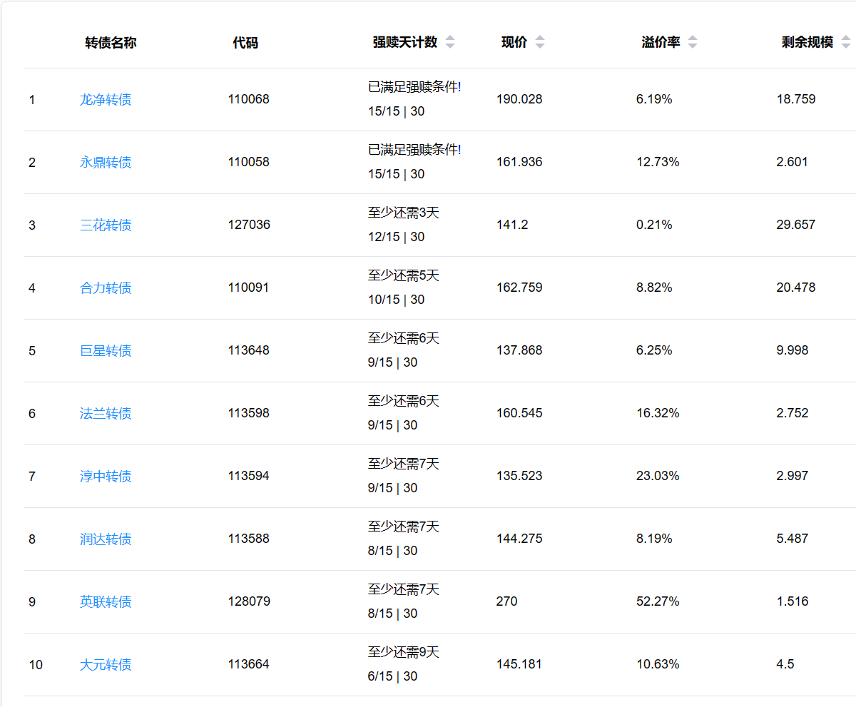 下面这些转债,要注意强赎杀溢价风险,尤其是溢价率在5%以上的。