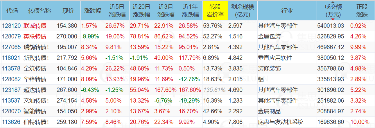 其中华峰转债、瑞鹄转债、拓普转债、联创转债都是很熟悉的老面孔,值得长期关注。