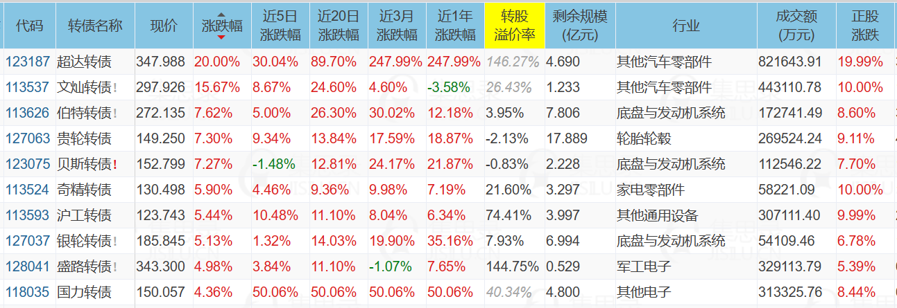 1、涨幅榜前十