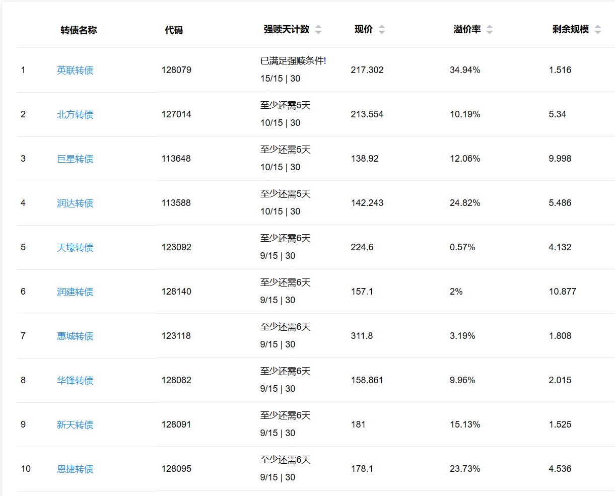 下面这些转债,要注意强赎杀溢价风险,尤其是溢价率在5%以上的。