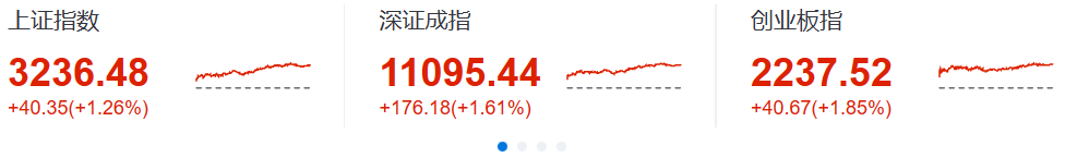 截至收盘,沪指涨1.26%,深成指涨1.61%,北证50涨0.59%,创业板指涨1.85%。沪深两市全天成交额9208亿元,北向资金净买入135.84亿元。两市超3900股上涨。