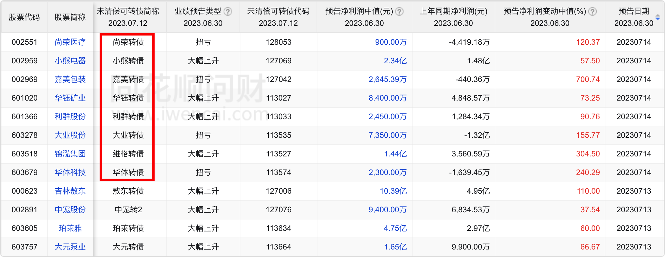 **4、**同步一下,最新的半年报业绩预增预减的转债们。