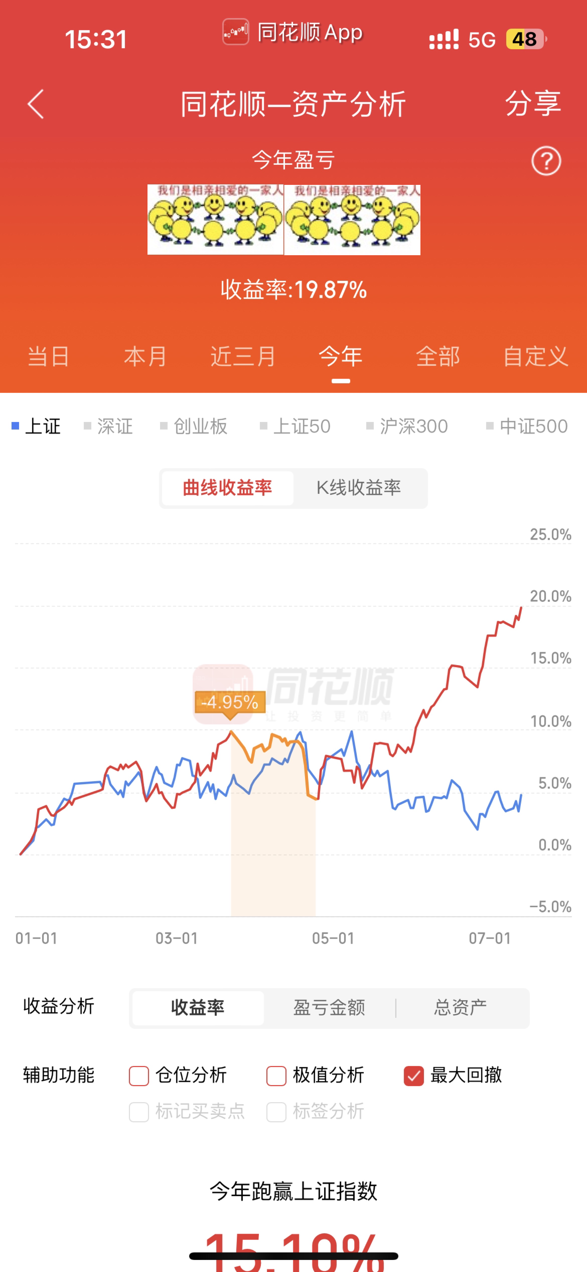 轮动策略的初心就是用程序代替人工思考和决策,满仓不择时,从效果来看,今年累计收益率+19.87%,说明还是经得住考验的。