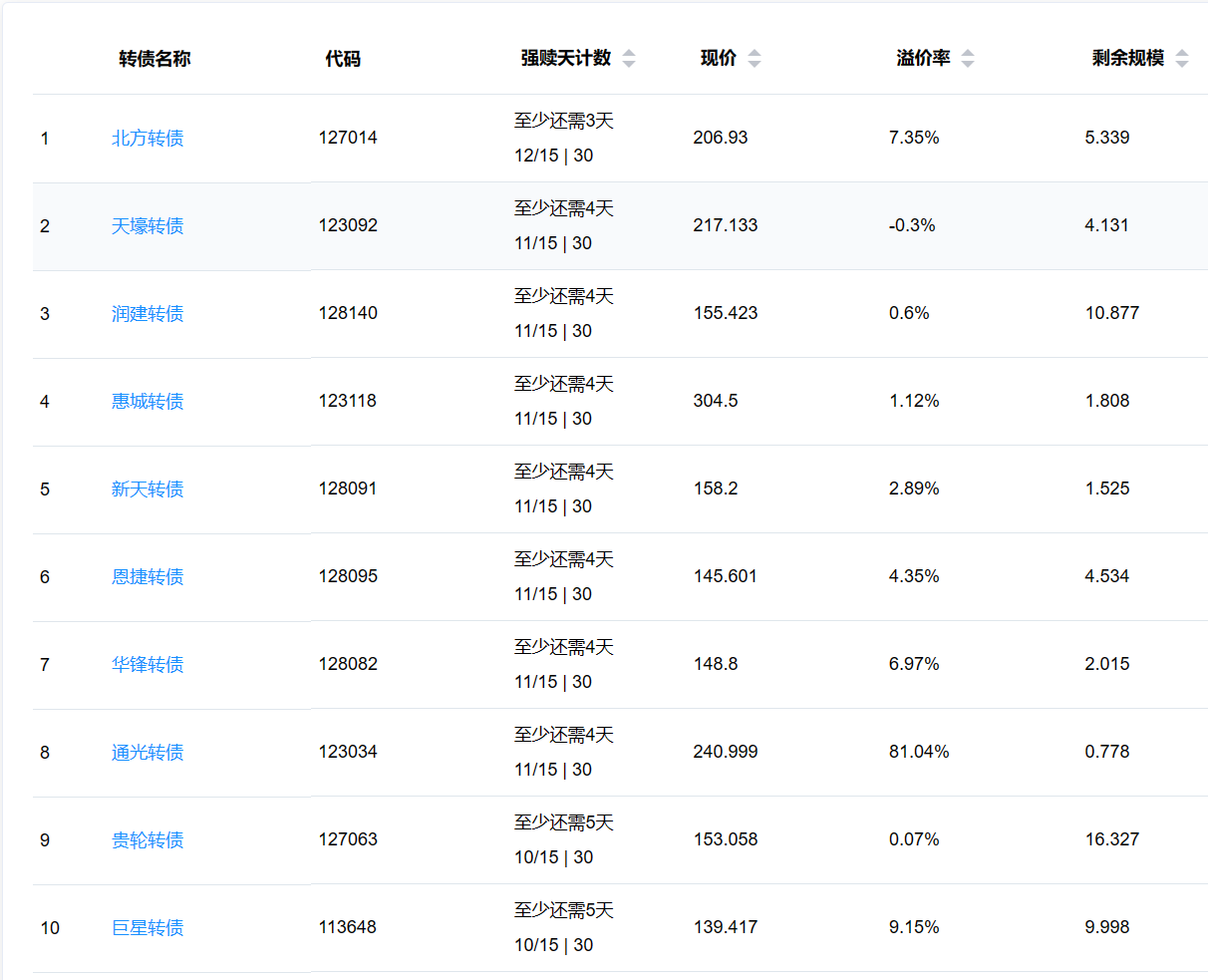 下面这些转债,要注意强赎杀溢价风险,尤其是溢价率在5%以上的。