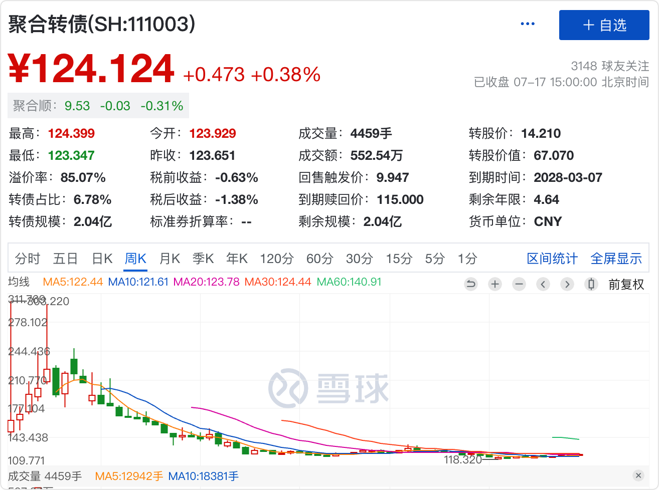 不信邪的话,可以参考一下聚合转债的历史走势。