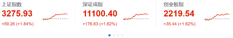 截至收盘,沪指涨1.84%,深成指涨1.62%,北证50涨0.45%,创业板指涨1.62%。沪深两市全天成交额9483亿元,两市近3600只个股上涨,北向资金净买入160.05亿元。