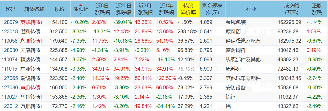 2、跌幅榜前十