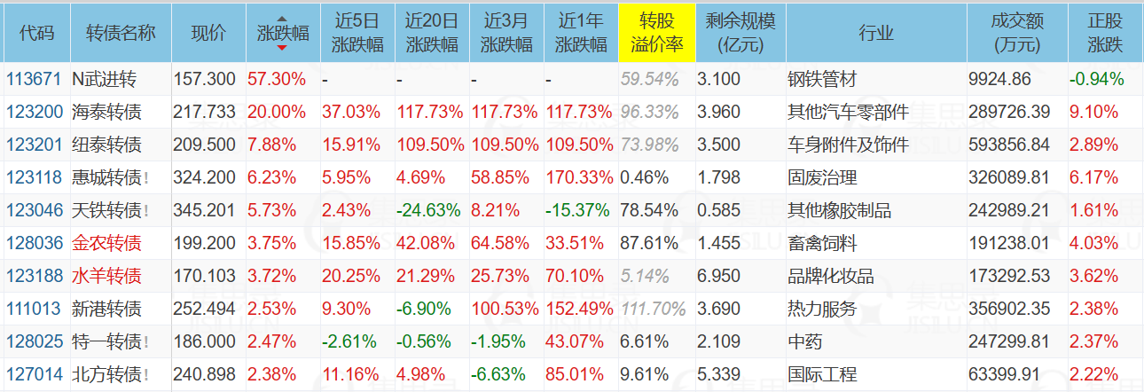 1、涨幅榜前十