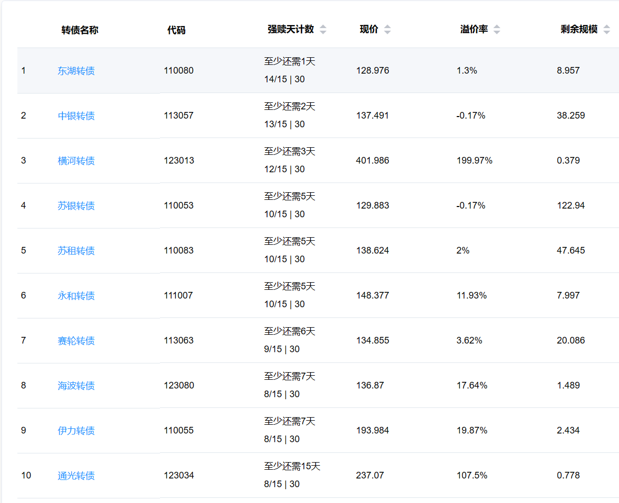 下面这些转债,要注意强赎杀溢价风险,尤其是溢价率在5%以上的。