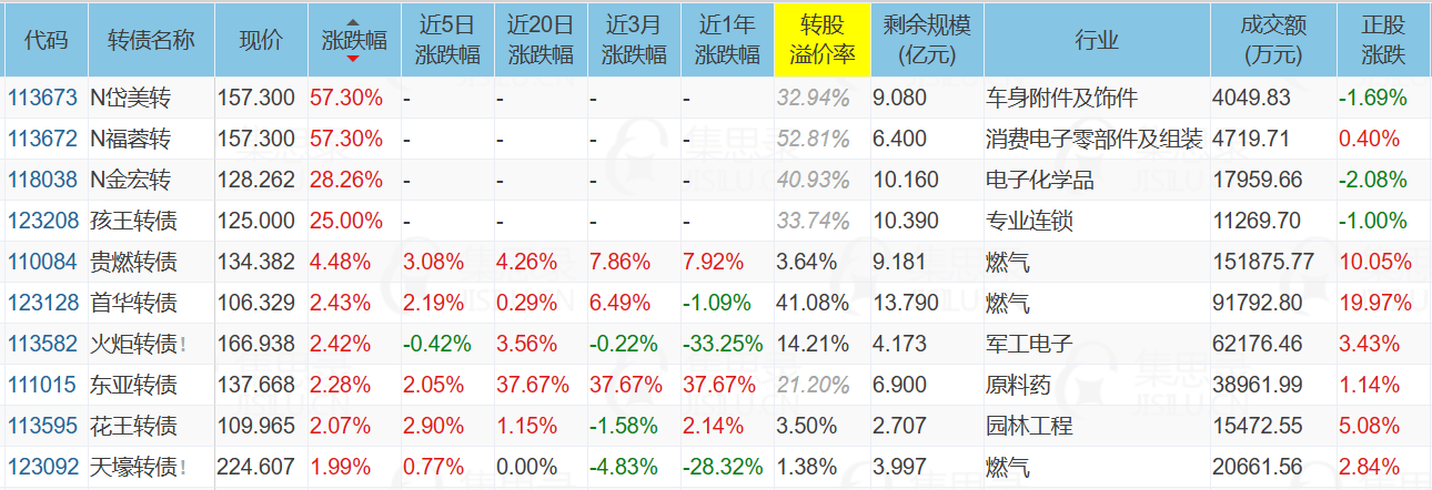 岱美转债、福蓉转债,由于流通规模小且正股质地不错,预测的有冲击200元希望,尾盘不负所望达到了最高价157.3元。