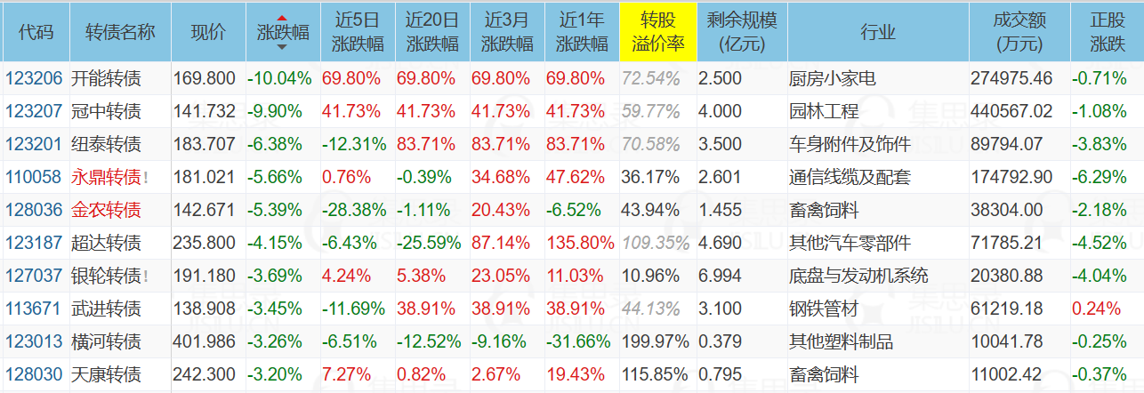 正股质地更好,流通规模也更小的开能转债,反而冲到199.4元停下了脚步,随后一路跳水,最低价168.053元,收盘169.8元,上下差价最高达到了31.347元。