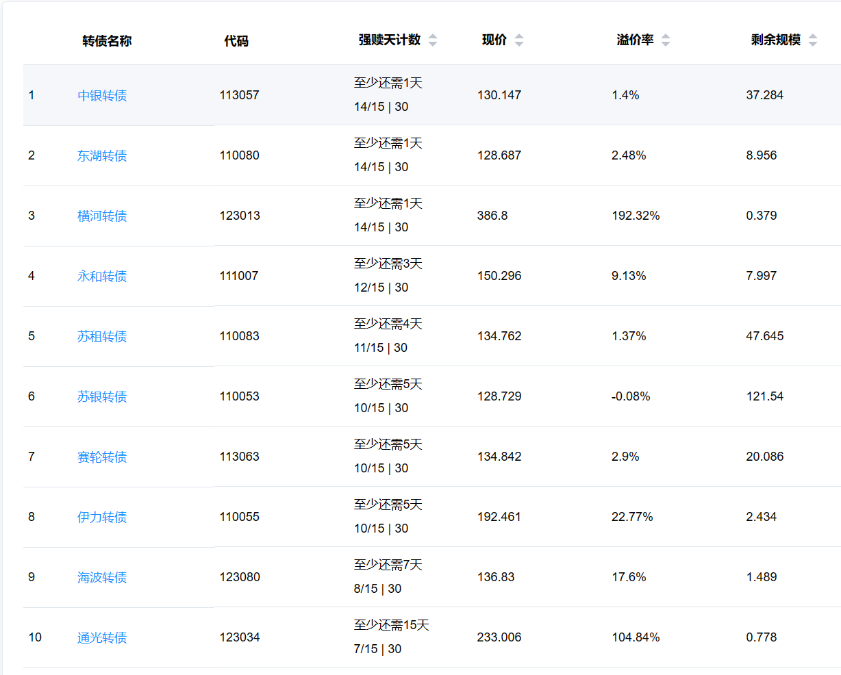 下面这些转债,要注意强赎杀溢价风险,尤其是溢价率在5%以上的。