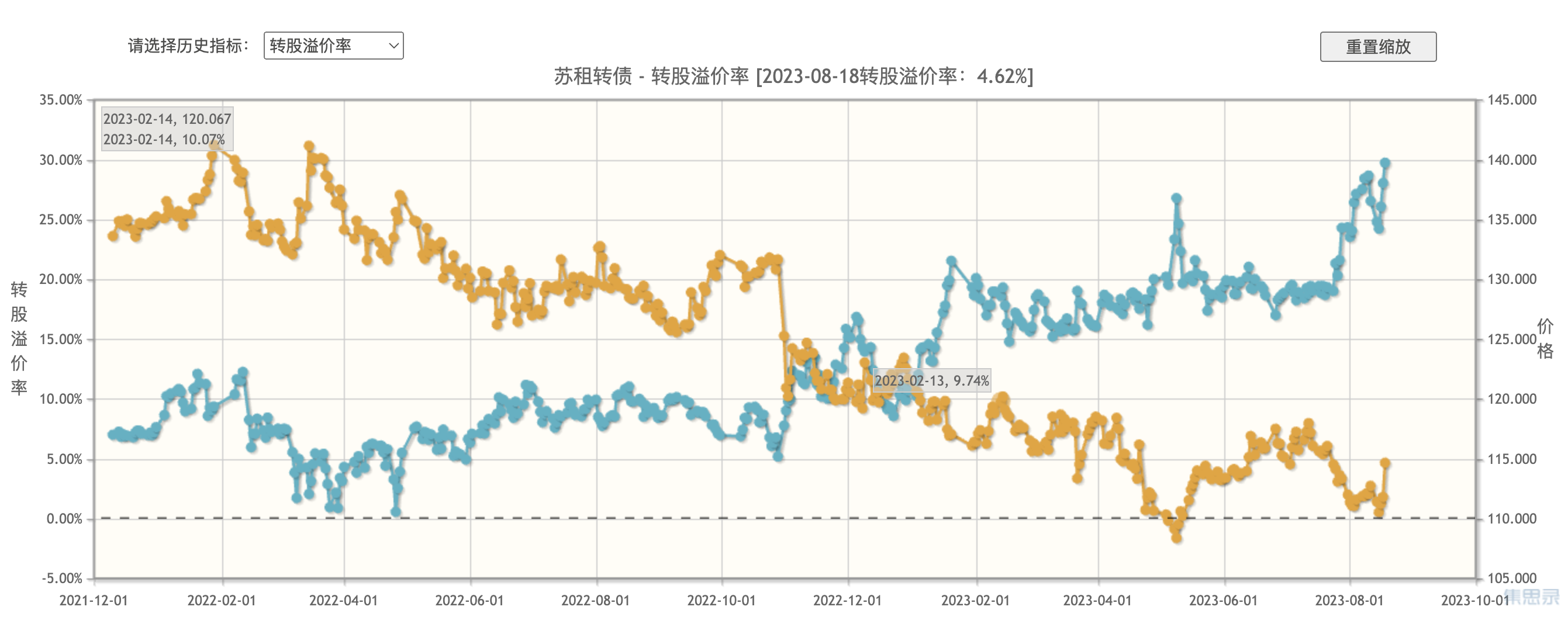 3、苏租转债,公告未来12个月不提前赎回。不赎回时间较长,剩余年限还有4.236年,参考历史溢价率走势,预估下周溢价率有望提升到5%~10%。