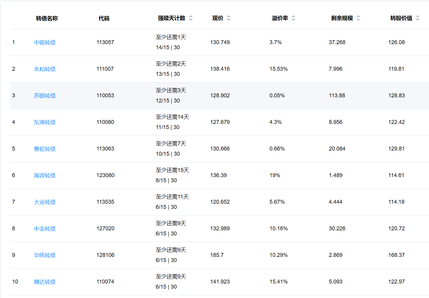 下面这些转债,要注意强赎杀溢价风险,尤其是溢价率在5%以上的。
