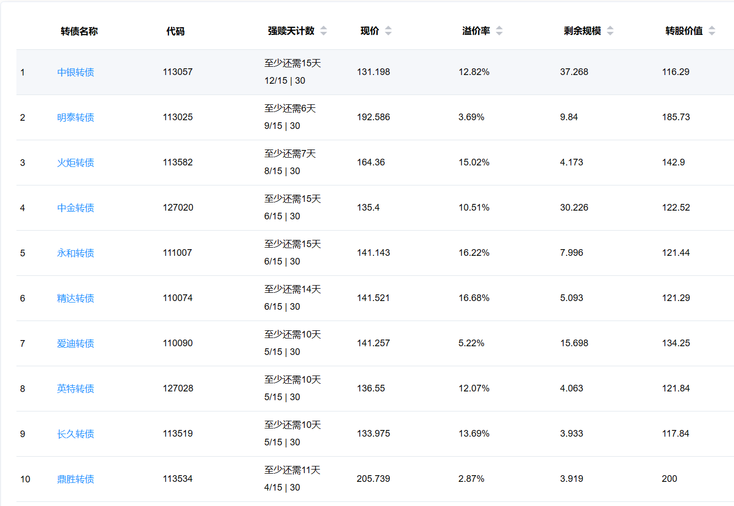 下面这些转债,要注意强赎杀溢价风险,尤其是溢价率在5%以上的。