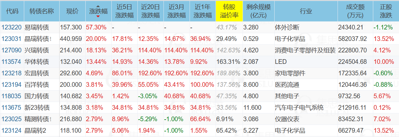 1、涨幅榜前十