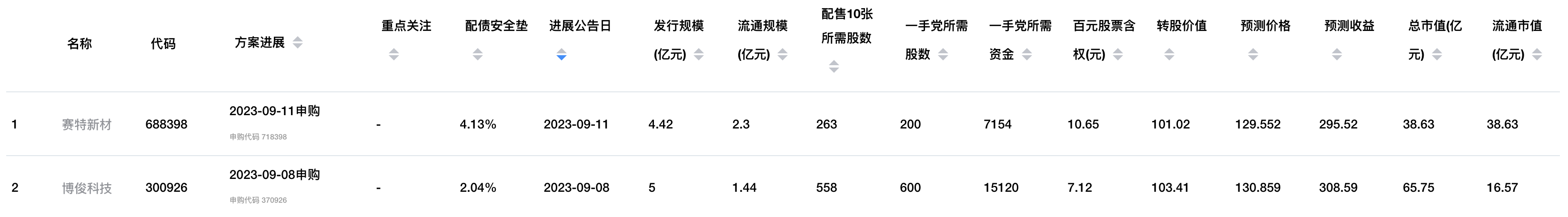 两只都是小规模债,都有成妖可能,配债需要股数和一手党安全垫可以参考下图:
