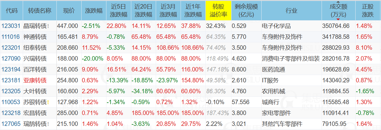 超达转债:189.52元,溢价率49.26%,剩余规模4.69亿,距离转股期0.804月;