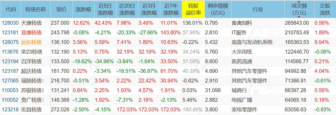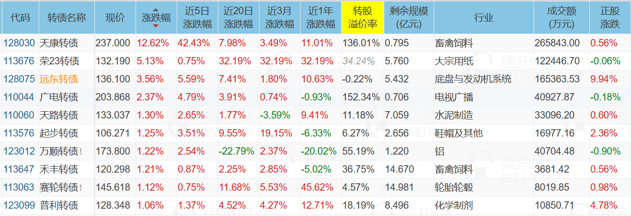 再看看今天涨幅榜第一的天康转债,剩余年限仅0.255年,溢价率高达136%,此时拉升明显是和百洋转债同样的目的——炒作拉升让韭菜高位接盘,可以预见近期也将会遭遇和百洋转债同样的断头杀结局。