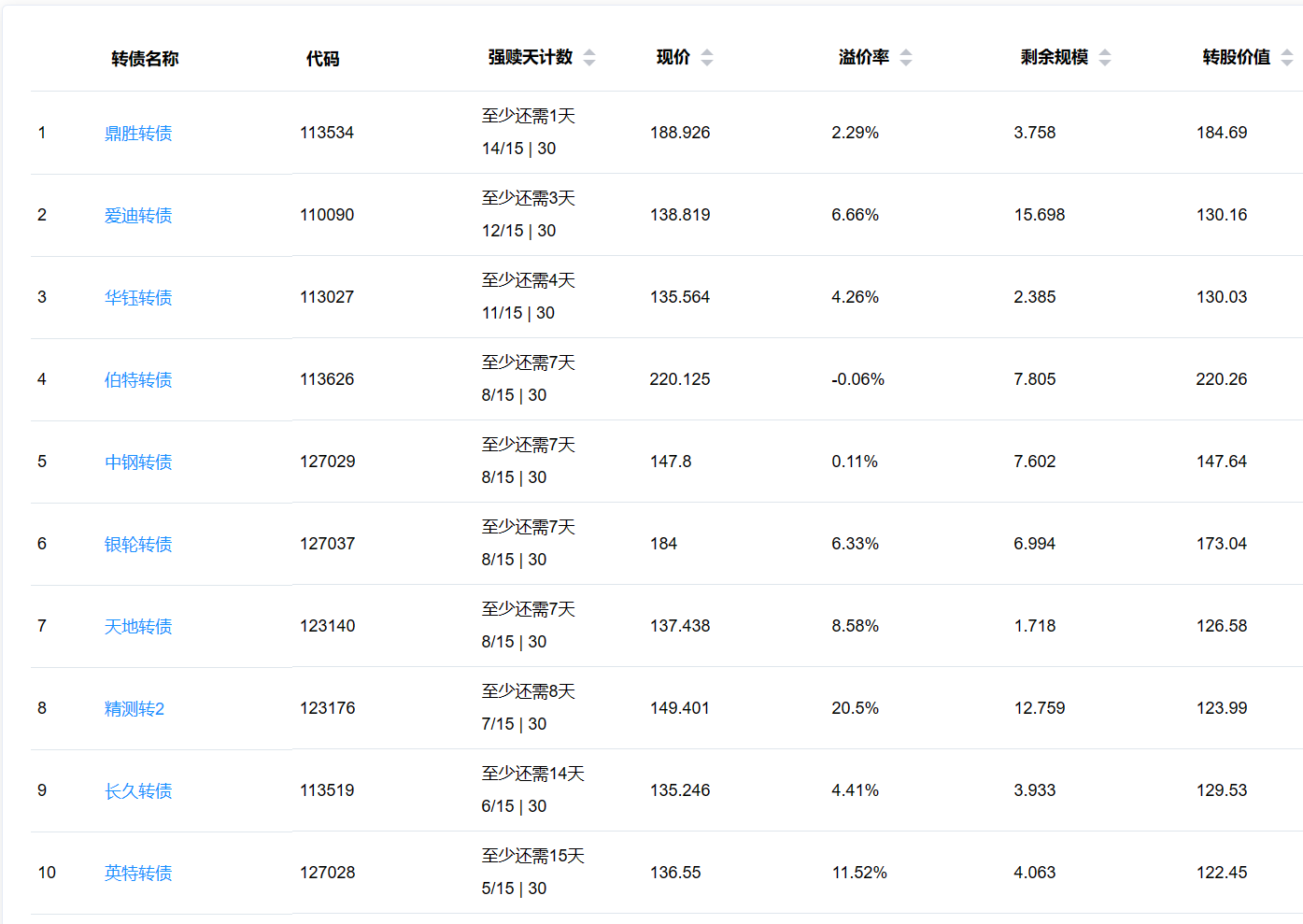 2、即将满足强赎转债