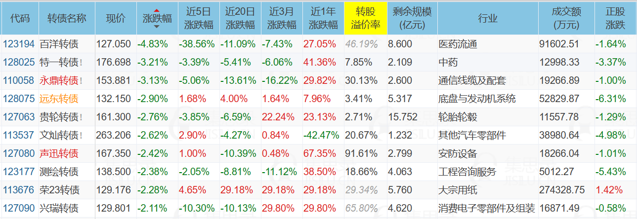 2、跌幅榜前十
