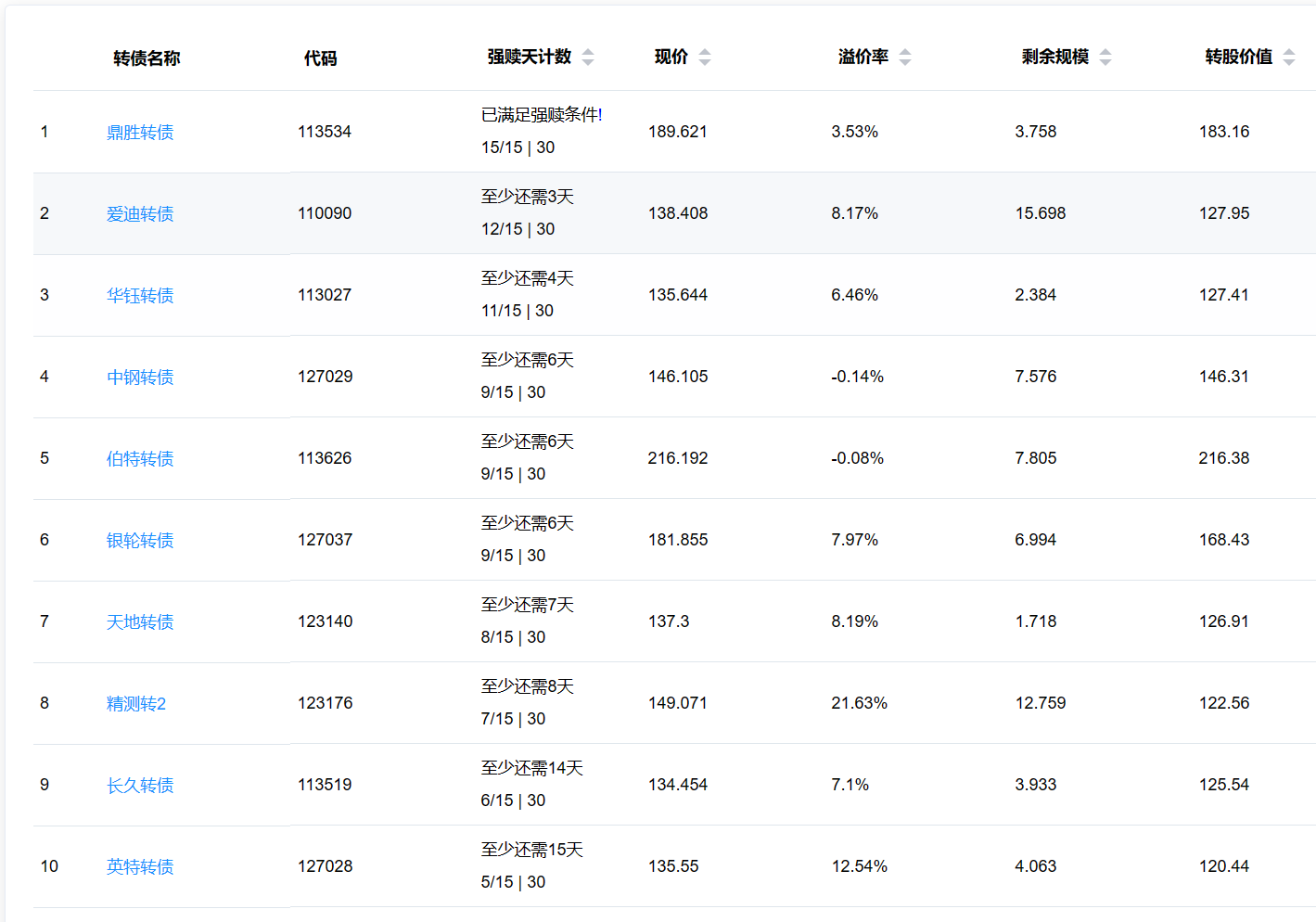 2、即将满足强赎转债