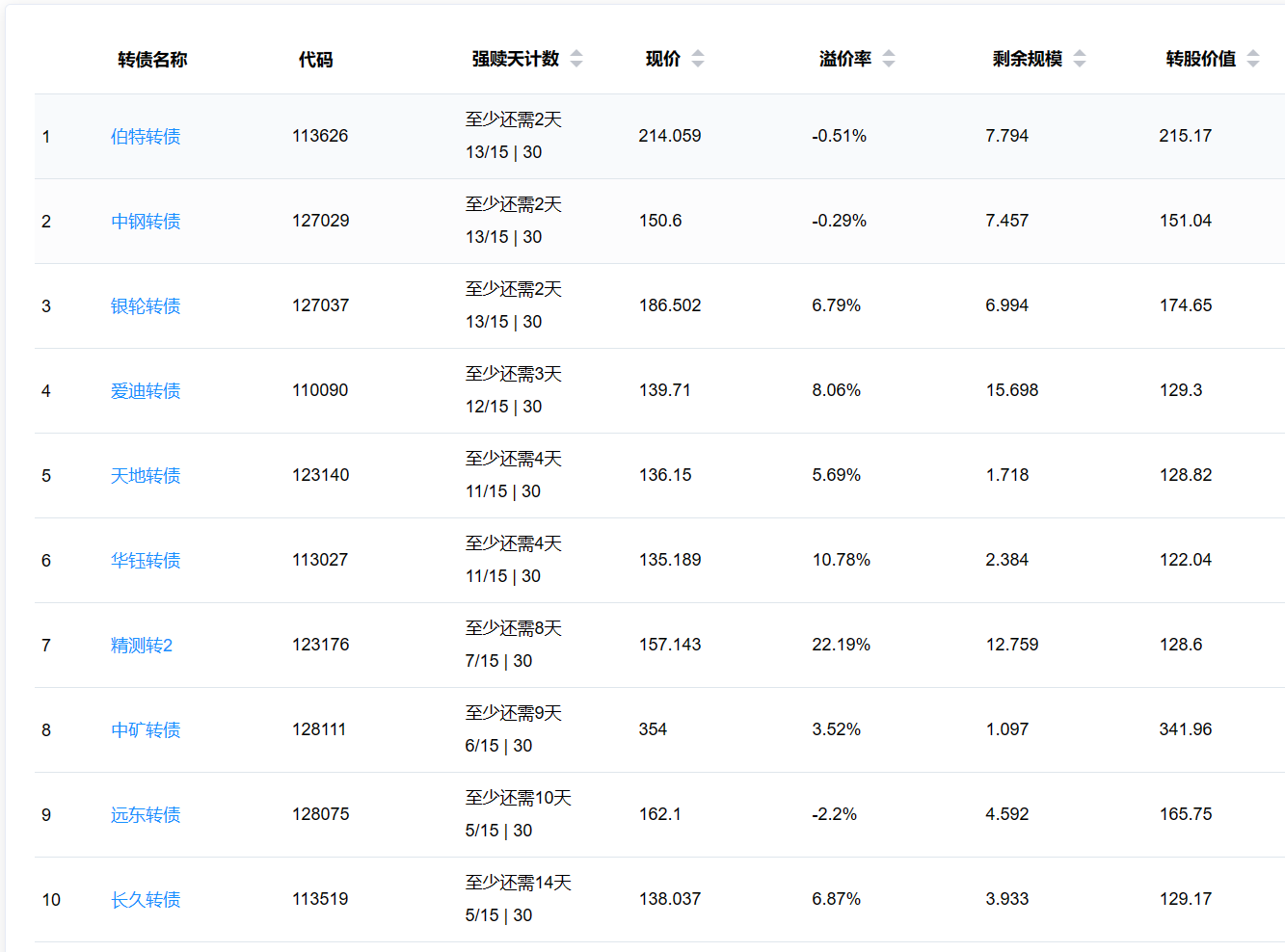 下面这些转债,要注意强赎杀溢价风险,尤其是溢价率在5%以上的。