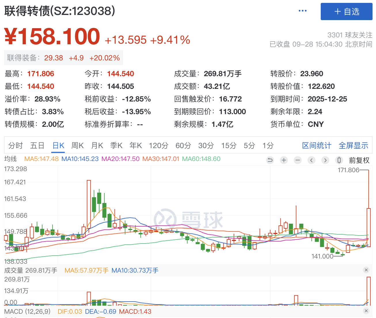 轮动策略持仓中的联得转债爆发,正股涨停,最高涨幅18.89%,今天在166.5左右进行了清仓。