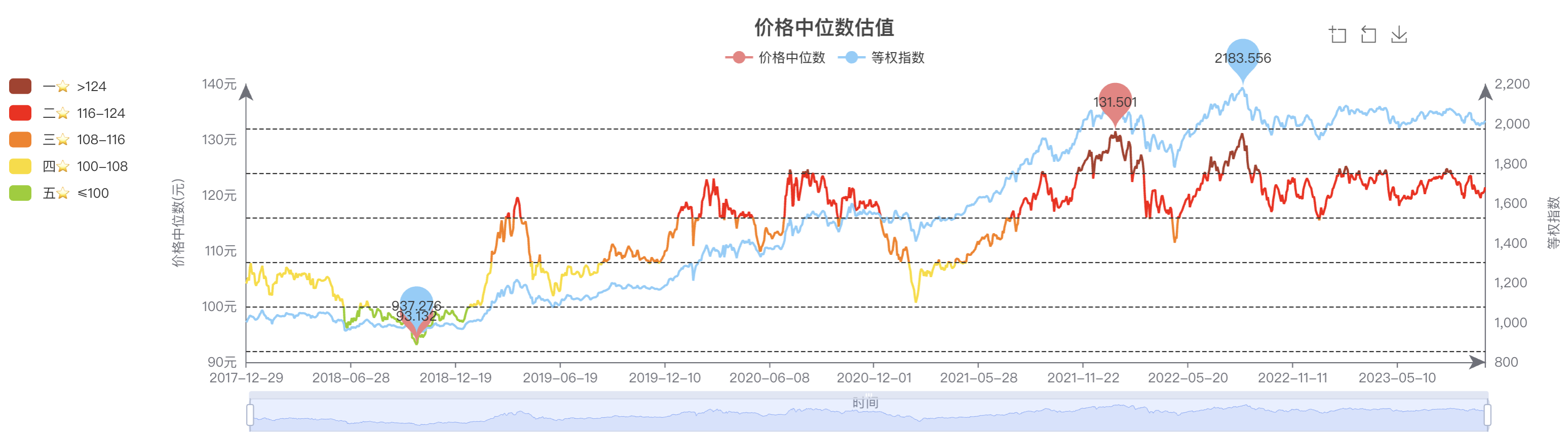 本周估值相比上周上涨1元,当前依然位于二星级估值区,建议摊大饼仓位5-7成。